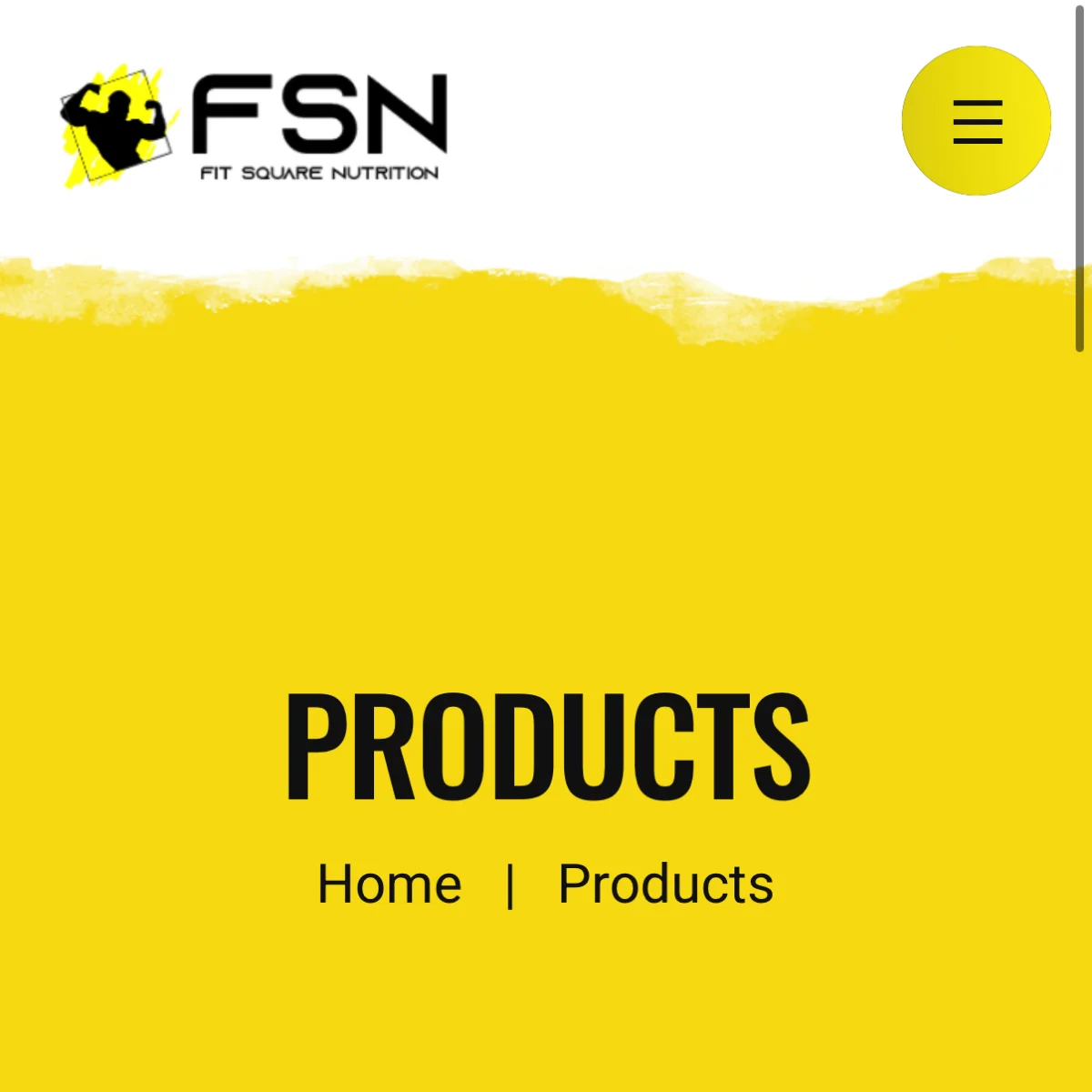 An e-commerce and brand website for Fit Square Nutrition, featuring their health and fitness product line with modern, energetic design.